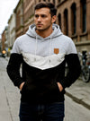 Men's quilted bomber sweatshirt, Made with premium, heavyweight fabric, it offers a soft touch, impeccable fit, and excellent thermal insulation. Its minimalist and timeless design, combined with the structured hood, provides an elegant, versatile, and imposing look, ideal for cold days with class. Details: Lining Material: Cotton Material: Cotton, mesh, and polyester Features: Multipurpose Pockets / Hood Available Colors: Black, gray, burgundy, navy blue, and dark gray. Note: The reference numbers refer to the dimensions of each body part specified in the table.