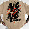 Oversized Streetwear Plus Size No Risk No Story aesthetic is refined in its details and high-quality finish. Made from 91% cotton and 9% elastane, it weighs 250g. As a premium product, perfect for workouts or for your lifestyle outside the gym, this piece makes a statement with understated elegance. Made with sustainable cotton, BCI (Better Cotton Initiative) certified, sourced from European mills, it provides a super soft, lightweight, and comfortable feel, and a flawless fit for all types of styles. Its dyeing is done using the reactive dyeing method, with its main characteristic being the flexibility of the pigments and dyes, preventing shortening, fading, or significant loss of the original color over time. The prints were applied with high-quality, fade-resistant, and crack-resistant High Definition silk.